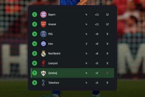 實時積分榜方面,卡拉巴赫憑借對切爾西的領先已經來到歐冠第7位,此前他們在歐冠正賽中先后戰勝本菲卡和哥本哈根,頭2輪收獲2連勝。