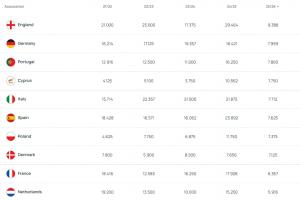 歐戰(zhàn)本賽季最新積分:英格蘭、德國、葡萄牙前三,塞浦路斯第四!