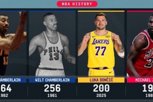 東契奇開賽季5場比賽砍200分 歷史第三高&前二都是張伯倫