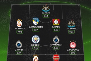 WhoScored本周歐冠最佳陣:奧斯梅恩、梅里諾、福登、丹-伯恩在列