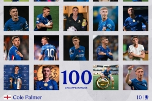 切爾西官方也曬出了海報為帕爾默作為紀念,并配文:“帕爾默在今晚完成了切爾西生涯第100場里程碑。”