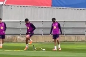 David Ibá?ez在社交媒體曬出巴薩訓(xùn)練視頻,并配文寫(xiě)道:“巴薩今日進(jìn)行訓(xùn)練,備戰(zhàn)對(duì)陣塞爾塔的比賽。埃里克-加西亞佩戴面具訓(xùn)練,克里斯滕森明日也可能隨隊(duì)出征。”