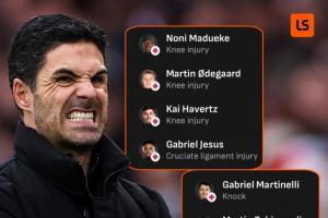 目前,哈弗茨、馬杜埃凱、馬丁內利、約克雷斯仍處于傷病未愈的狀態,熱蘇斯剛剛回歸訓練,槍手一線隊前鋒僅特羅薩德和薩卡兩人健康能夠上場,中場梅里諾還客串出任首發中鋒。