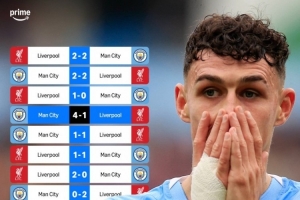 據媒體統計,近8次在英超對陣利物浦,曼城僅取勝1場,具體戰績1勝4平3負。