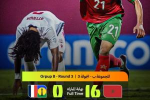 本場比賽新喀里多尼亞早早被罰下兩人,第31分鐘起就9人作戰。摩洛哥U17上半場打入7球,下半場再入9球,全場狂轟78腳射門,最終16-0贏下了這場比賽。