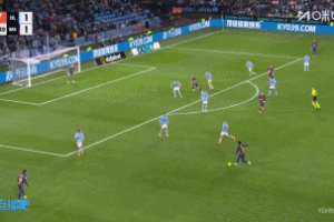 比賽第17分鐘,巴薩進攻,巴爾德分球,拉什福德傳中助攻,萊萬搶點墊射破門,巴薩再度領先2-1塞爾塔!