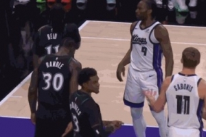 GIF-小薩極慢歐洲步上籃不中,自投自搶補籃被犯規(guī)