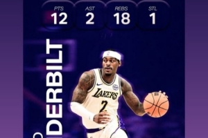 體育資訊11月10日訊 湖人球員范德比爾特更新社媒,轉發了自己昨日比賽的數據海報。