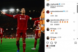 范迪克也在個人社媒曬出慶祝進(jìn)球照片,配文寫道:“努力追求偉大!”