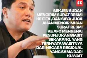 托希爾補充說,印尼足協希望國際足聯和亞足聯能夠指派來自中東以外地區的裁判,以確保公平競賽的原則得到貫徹。
