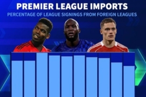 以下為近10年英超俱樂部從其他聯賽引援比例情況: