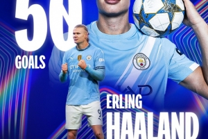 這一球也是哈蘭德個人職業生涯的歐冠第50球,歐冠官方更新海報送上祝賀。