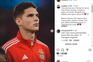 效力于本菲卡的烏克蘭中場(chǎng)蘇達(dá)科夫賽后在ins上寫道:“一場(chǎng)慘痛的失利,我們需要更堅(jiān)強(qiáng),昂首挺胸繼續(xù)前進(jìn),感謝球迷們直到最后的支持。”