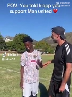 克洛普開玩笑地安慰一名年輕的曼聯球迷: