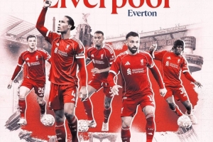 利物浦官方社媒發(fā)布了為此役制作的海報(bào),范迪克、薩拉赫、羅伯遜、弗林蓬、赫拉芬貝赫出鏡。