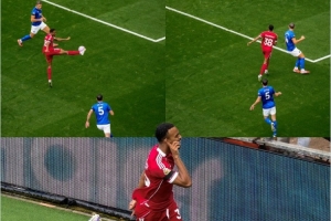 本場比賽第10分鐘赫拉芬貝赫接薩拉赫傳球打進精彩凌空抽射,利物浦官推也曬出這粒進球過程的照片,配文:“藝術!”