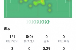 技術統計數據顯示,卡塞米羅1射1正打進1球,3次丟失球權,22次傳球有1次關鍵傳球,但他3次地面對抗均沒能成功。