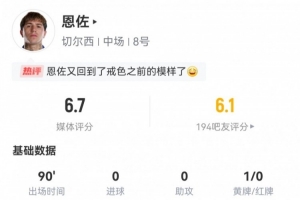 體育資訊9月21日訊 本輪英超曼聯2-1切爾西。此役恩佐首發打滿全場,球員全場重點數據如下↓