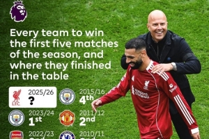 據英超官方統計,英超歷史上共有14支球隊賽季開局5連勝(包括本賽季利物浦),此前做到這點的13支球隊之中,4支球隊最終贏得當賽季英超冠軍,分別是切爾西(2次)、利物浦和曼城。