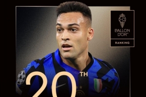 體育資訊9月23日訊 2025年金球獎排名陸續公布,國米前鋒勞塔羅第20,這也是其第四次獲得提名。