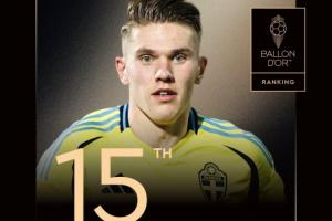 阿森納前鋒約克雷斯排名第15名,這是他第1次獲得提名。