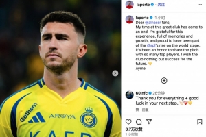 體育資訊9月12日訊 西班牙中衛拉波爾特即將回歸畢爾巴鄂競技,他在個人INS上發文,告別利雅得勝利,拉波爾特寫道: