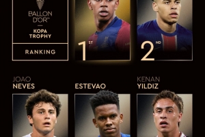 體育資訊9月23日訊 金球獎官方公布了科帕獎的最終排名順序。