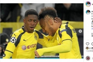 奧巴梅揚社媒曬出與登貝萊效力多特、巴薩時期的多張合照,配文:“兄弟,我有太多照片要發了!感謝你成為現在的自己????實至名歸??????也恭喜你,穆斯 (登貝萊好友)????抱歉發了最后一張照片????”