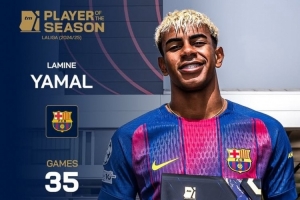 體育資訊9月12日訊 《轉會市場》官方宣布,18歲的巴薩邊鋒亞馬爾當選德轉評選的24-25賽季西甲MVP。