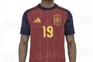 西班牙隊新款主場球衣將以深紅色為主體,搭配深海軍藍色的袖子,并在肩部飾有紅黃紅三道條紋。球衣上還大面積加入了細密的黃色豎條紋,以及點狀細節裝飾。