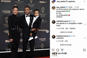 體育資訊9月23日訊 拉菲尼亞妻子更新社交媒體,曬出與丈夫等攜手參加金球獎頒獎典禮的相關動態。