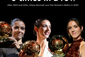 體育資訊9月23日訊 在巴黎進行的金球獎頒獎典禮上,巴薩女足球員邦馬蒂連續第三次奪得金球獎,《世體》稱贊了球員獲得的巨大成就。