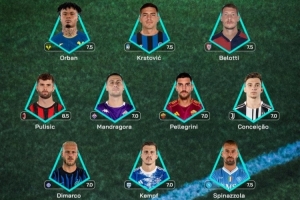 體育資訊9月23日訊 意甲官方公布了第4輪最佳陣容,普利西奇、孔塞桑、迪馬爾科在列。