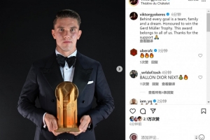 約克雷斯獲得2025年蓋德-穆勒獎(最佳前鋒),他在社交媒體上曬出手捧獎杯的照片,并寫道:“每一個進球背后,都凝聚著球隊、家庭和夢想的力量,很榮幸獲得蓋德·穆勒獎,這個獎項屬于我們所有人,感謝大家的支持!”
