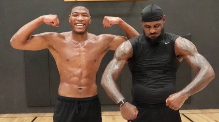 照片中,詹姆斯與八村塁大秀肌肉,湖媒Lakers Daily轉發并配文:積極備戰新賽季!