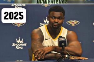 鵜鶘球星錫安現身媒體日,臉上棱角分明,連下巴都尖了。