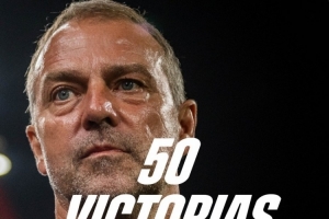 此役是弗里克執(zhí)教巴薩的第50場(chǎng)勝利,巴薩官方社媒曬出海報(bào),對(duì)他表示祝賀。